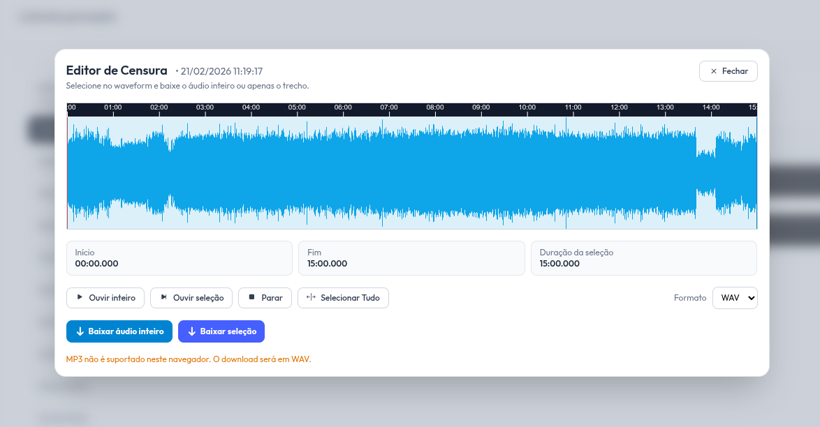 A censura do Rádio Tools, possibilita extração de partes do áudio.
