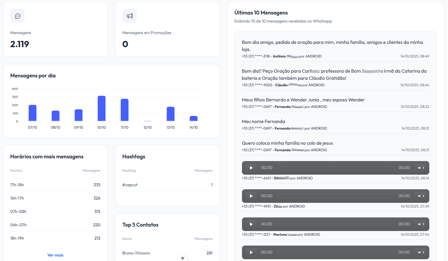 Integrada ao WhatsApp da sua emissora, a Rádio Tools transforma interações em dados valiosos sobre sua audiência.